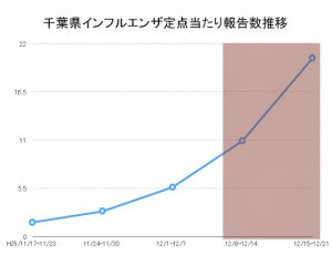 インフルエンザの警報レベルは1週間の定点当たりの報告数が30以上の場合、注意報レベルは1週間の定点当たり報告数が10以上の場合です。